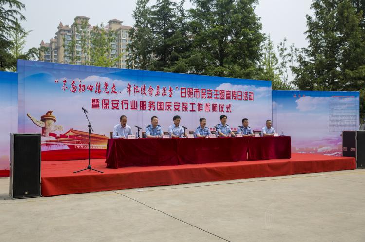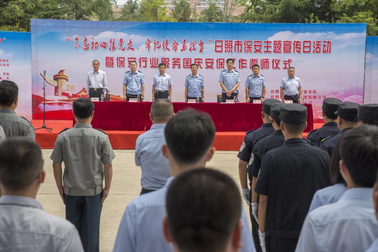 為進(jìn)一步提升保安行業(yè)形象,激勵(lì)全市保安從業(yè)單位和廣大保安員踴躍投身新中國(guó)成立70周年大慶安保工作,根據(jù)公安部、山東省公安廳統(tǒng)一部署,7月24日,日照市公安局治安支隊(duì)在日照保安發(fā)展集團(tuán)有限公司組織舉辦了“不忘初心跟黨走、牢記使命勇?lián)?dāng)”——日照市保安主題宣傳日活動(dòng)暨保安行業(yè)服務(wù)國(guó)慶安保工作動(dòng)員大會(huì)。市公安局治安警察支隊(duì)政委郭淑欽,市公安局治安警察支隊(duì)警務(wù)科科長(zhǎng)辛峰,市公安局東港公安分局治安大隊(duì)教導(dǎo)員唐良,市公安局東港公安分局社區(qū)警務(wù)大隊(duì)大隊(duì)長(zhǎng)葉京波,日照保安發(fā)展集團(tuán)黨委書記、董事長(zhǎng)尹相光,日照保安發(fā)展集團(tuán)黨委副書記、總經(jīng)理相斌,以及部分保安員代表參加會(huì)議,日照保安發(fā)展集團(tuán)黨委專職副書記、工會(huì)主席公培元主持會(huì)議。