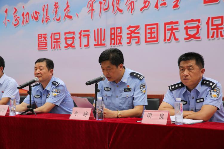 市公安局治安警察支隊(duì)政委郭淑欽同志進(jìn)一步強(qiáng)調(diào)指出:新中國(guó)成立70周年大慶安保攻堅(jiān)戰(zhàn)的號(hào)角已經(jīng)吹響,希望全市保安從業(yè)單位和廣大保安員不忘初心,牢記使命,繼續(xù)秉承社會(huì)責(zé)任與經(jīng)濟(jì)效益并重的發(fā)展理念,發(fā)揚(yáng)講政治、有信念,講規(guī)矩、有紀(jì)律,講道德、有品行,講奉獻(xiàn)、有作為的優(yōu)良作風(fēng),以時(shí)不我待的緊迫感、義不容辭的使命感和高度負(fù)責(zé)的責(zé)任感,投身新中國(guó)成立70周年大慶安保,發(fā)揮保安行業(yè)社會(huì)接觸面寬、信息渠道廣和隊(duì)伍規(guī)模大、組織紀(jì)律性強(qiáng)的優(yōu)勢(shì),依托警保聯(lián)勤聯(lián)防體系,積極參與治安信息收集、社會(huì)治安巡邏、治安秩序維護(hù)、應(yīng)急事件處置等工作,全力服務(wù)新中國(guó)成立70周年大慶安保,為新中國(guó)成立70周年大慶安保貢獻(xiàn)保安力量。