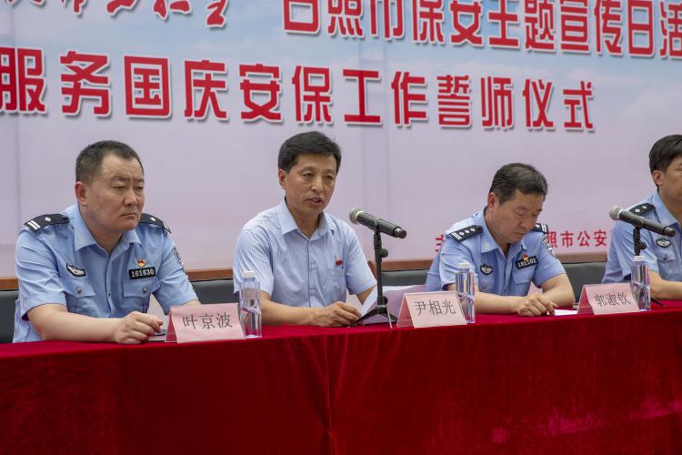 接著,市公安局治安警察支隊(duì)警務(wù)科科長(zhǎng)辛峰同志宣讀了《積極投身新中國(guó)成立70周年大慶安保倡議書》,向全市保安從業(yè)的單位和保安員發(fā)出了“踐行新使命、忠誠(chéng)保大慶”的工作號(hào)召。會(huì)上,日照保安發(fā)展集團(tuán)黨委書記、董事長(zhǎng)尹相光同志做講話,他指出:積極投身服務(wù)新中國(guó)成立70周年國(guó)慶安保工作,是事關(guān)社會(huì)和諧穩(wěn)定的重大政治任務(wù),也是檢驗(yàn)保安隊(duì)伍責(zé)任擔(dān)當(dāng)與實(shí)際本領(lǐng)的試金石,日照保安發(fā)展集團(tuán)作為市屬國(guó)企有義不容辭的責(zé)任,將以本次動(dòng)員大會(huì)為契機(jī),加強(qiáng)領(lǐng)導(dǎo),精心組織,緊緊圍繞“踐行新使命、忠誠(chéng)保大慶”主題主線,貫徹市委市政府“創(chuàng)新、落實(shí)”工作主旋律,充分發(fā)揮警輔力量,化風(fēng)險(xiǎn)、保穩(wěn)定,切實(shí)防范遏制重大案件和事故的發(fā)生。