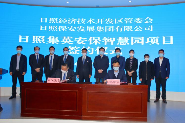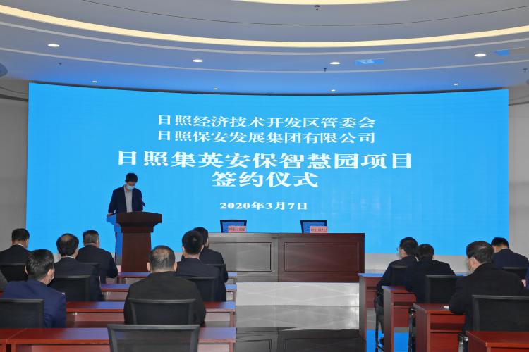 3月7日,日照經(jīng)濟(jì)技術(shù)開(kāi)發(fā)區(qū)和日照保安發(fā)展集團(tuán)聯(lián)合舉行日照集英安保智慧園項(xiàng)目簽約儀式。儀式活動(dòng)由日照經(jīng)濟(jì)技術(shù)開(kāi)發(fā)區(qū)工委委員、管委副主任蘇普主持,日照經(jīng)濟(jì)技術(shù)開(kāi)發(fā)區(qū)工委書(shū)記杜江濤,工委副書(shū)記、管委常務(wù)副主任厲偉和日照保安發(fā)展集團(tuán)黨委書(shū)記、董事長(zhǎng)尹相光,黨委副書(shū)記、總經(jīng)理相斌,副總經(jīng)理徐海鋒出席儀式。日照經(jīng)濟(jì)技術(shù)開(kāi)發(fā)區(qū)黨政辦公室、黨群工作部、招商集團(tuán)綜合部、經(jīng)濟(jì)發(fā)展局、財(cái)政局、交通和建設(shè)局、行政審批服務(wù)局、自然資源和規(guī)劃分局、公安分局、北京路街道和日照保安發(fā)展集團(tuán)投資發(fā)展部、綜合管理部主要負(fù)責(zé)同志參加儀式。
