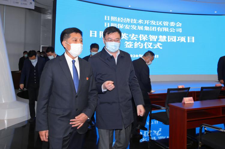 (工委副書(shū)記、管委常務(wù)副主任厲偉同志,日照保安發(fā)展集團(tuán)有限公司黨委副書(shū)記、總經(jīng)理相斌同志現(xiàn)場(chǎng)簽約)